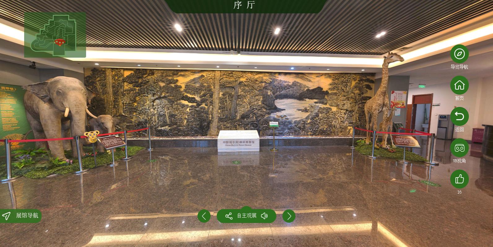 该数字展厅采用高分辨率三维扫描相机,通过采集室内外全景数据,涵盖博物馆二、三层共13个单元展厅展项的全部内容,室内外三维模型30余件,动物互动三维模型24件。使用720°全视角及三维数字技术,语音导览、三维视角、VR浏览等先进手段,构建出虚拟体验环境,指引参观者走遍展厅的每一个角落,观赏展厅中的各种展品,所有细节均可尽收眼底,其中的真人配音讲解,更是让观众在较短的时间内获取到丰富的森林知识和信息,使虚拟展厅变得更为亲切和生动,给观赏者带来身临其境的感觉。