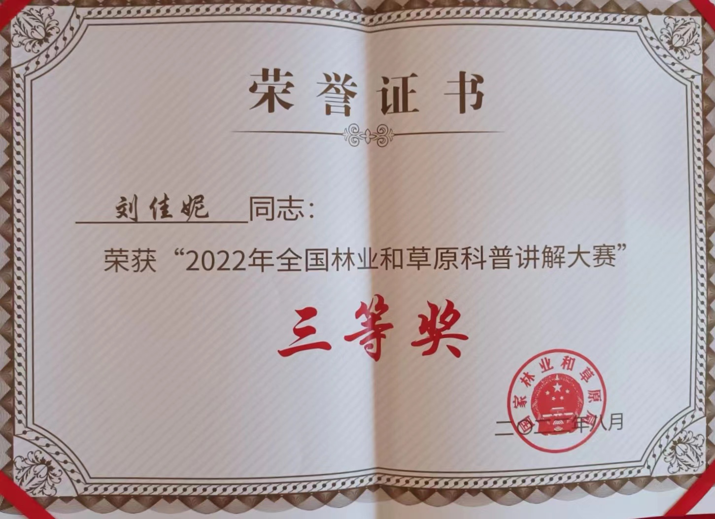 8月17日,由国家林业和草原局科技司主办、中国林学会承办的全国林业和草原科普讲解大赛以线上连线的方式举行,中国(哈尔滨)森林博物馆讲解员刘佳妮荣获三等奖。