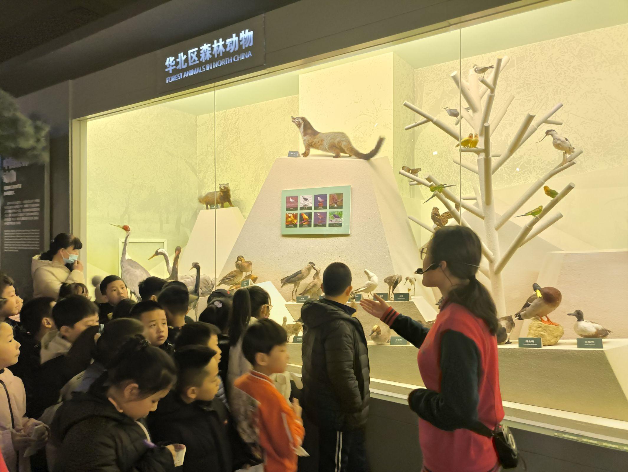 志愿讲解员用生动形象的语言为小朋友们科普了森林的演化过程、中国林业发展历程、动植物保护知识等。参观结束,志愿者们带领小朋友开展了趣味十足的答题活动。