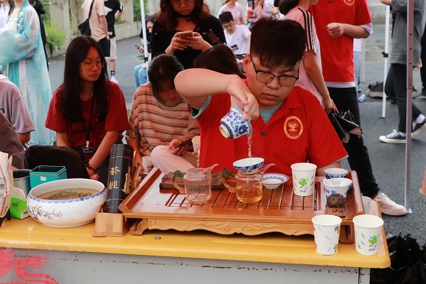 社团巡礼活动在雄壮的国歌声中拉开帷幕。中国(哈尔滨)森林博物馆志愿者协会积极准备,茶台、茶具、茶宠、各大茶类一应俱全,茶文化研创工作室志愿者为观众科普茶文化知识、展示茶艺冲泡,让在场人员感受到了中国传统茶文化的博大精深与深刻内涵。森林文化研创工作室制作的手工制品精美别致,有荷包、橡皮章、花灯、剪纸等,体现了志愿者们对森林文化原创产品的匠心与热爱。讲解部志愿者为观众们介绍了中国(哈尔滨)森林博物馆,加深了观众对森林文化的了解,提高了对生态文明的科学认知。