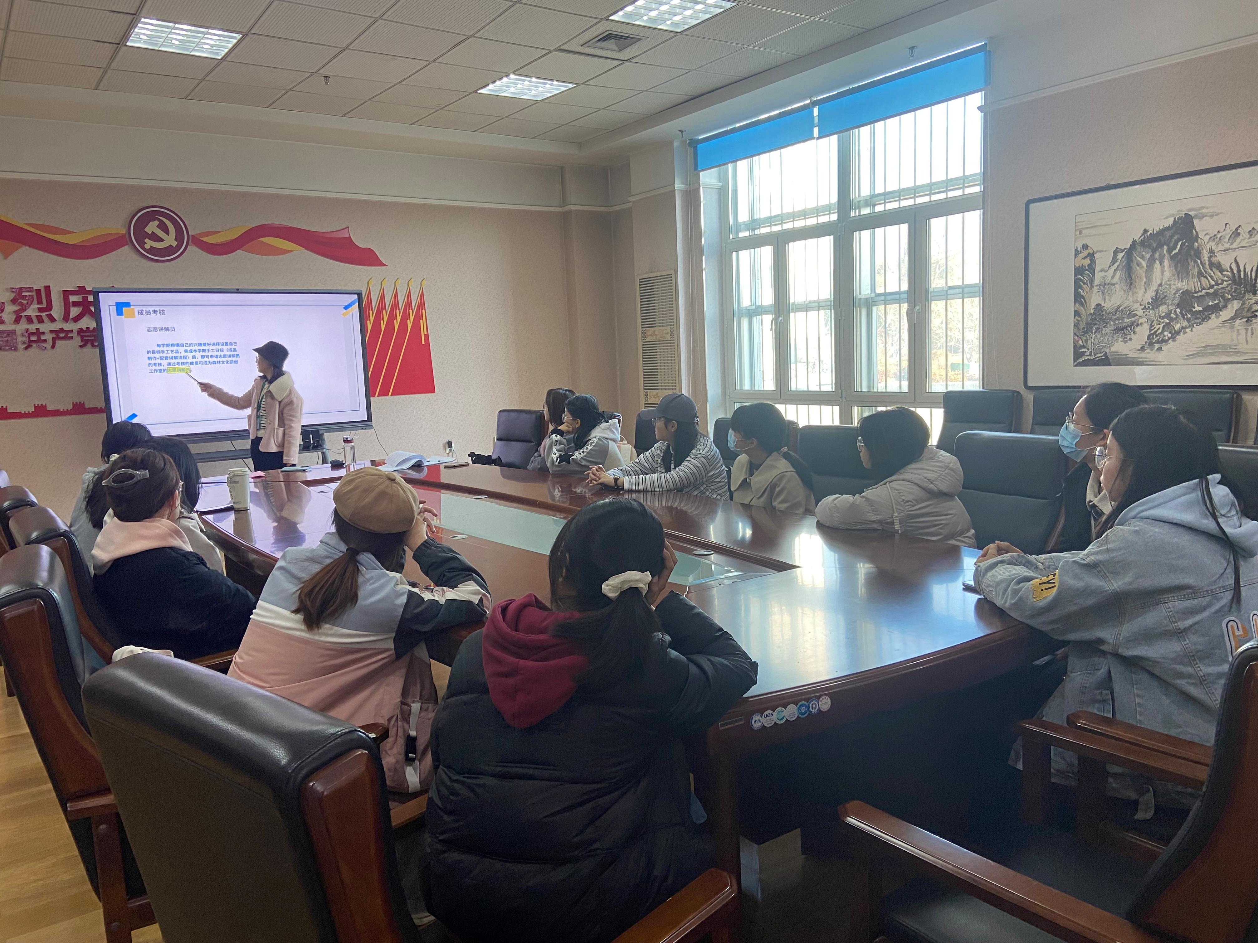 森林文化研创工作室部长杨倩对新志愿者进行培训