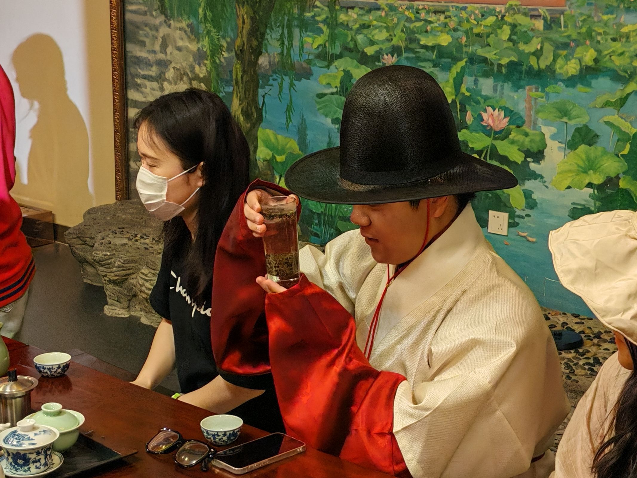 与会同学饶有兴致地观察、思考、研究、实践,亲自体验后互相分享自己的冲泡成果。参与活动的书画协会的同学表示,本次活动既丰富了校园文化生活,又对中华优秀传统文化有了更深地了解,在茶香茶韵中感受到了我国茶文化的独有魅力。国际交流学院的留学生表示,希望博物馆可以多举办此类活动,让我们有机会从不同角度了解中华优秀传统文化。